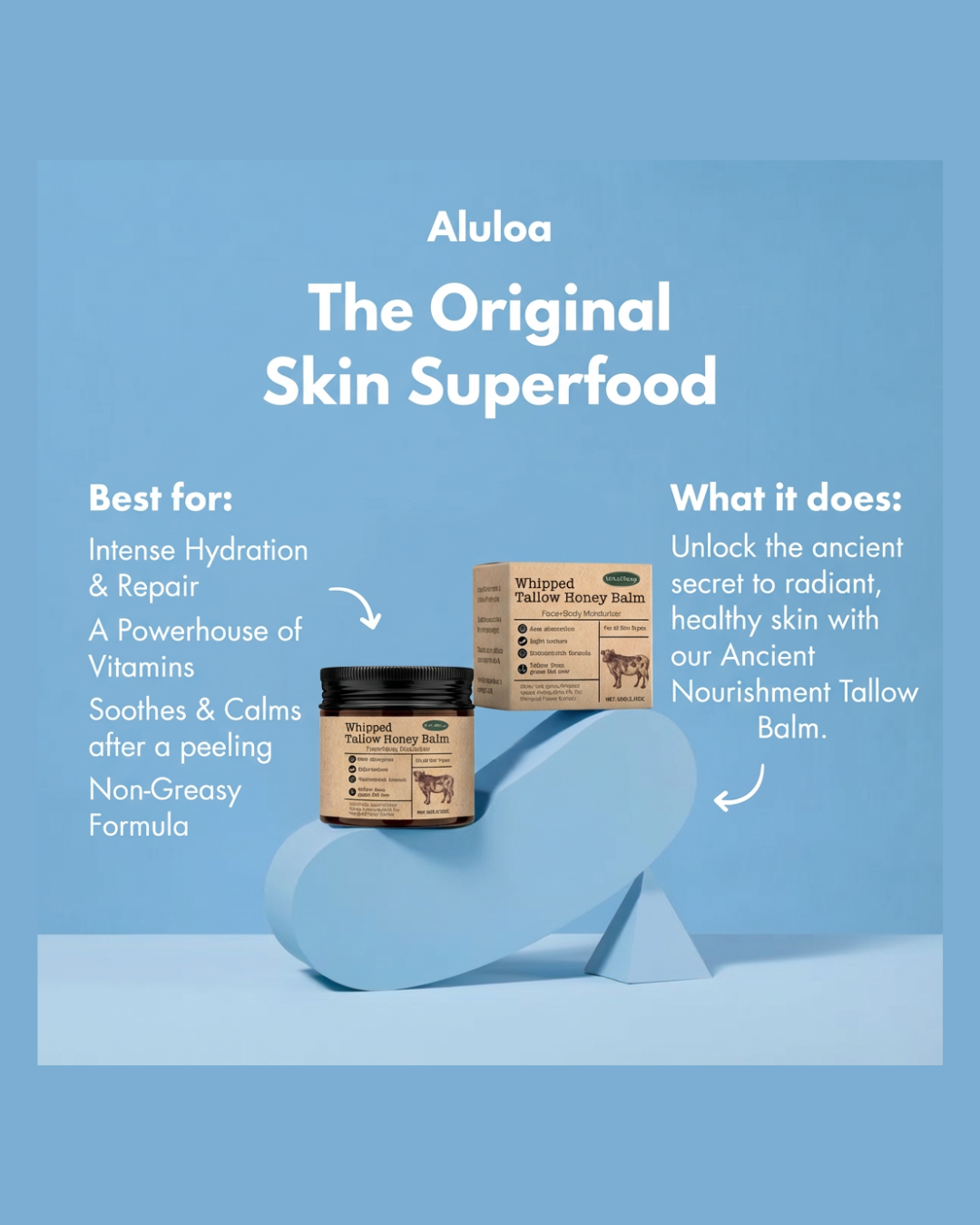 Throw out your synthetic moisturizers! Harness the ancient power of nature's superfood. Our rich blend of Grass-Fed Tallow and Raw Honey intensely nourishes, calms chronic redness, and restores the skin's protective barrier, bringing lasting balance and deep hydration to even the most reactive or sensitive skin types.